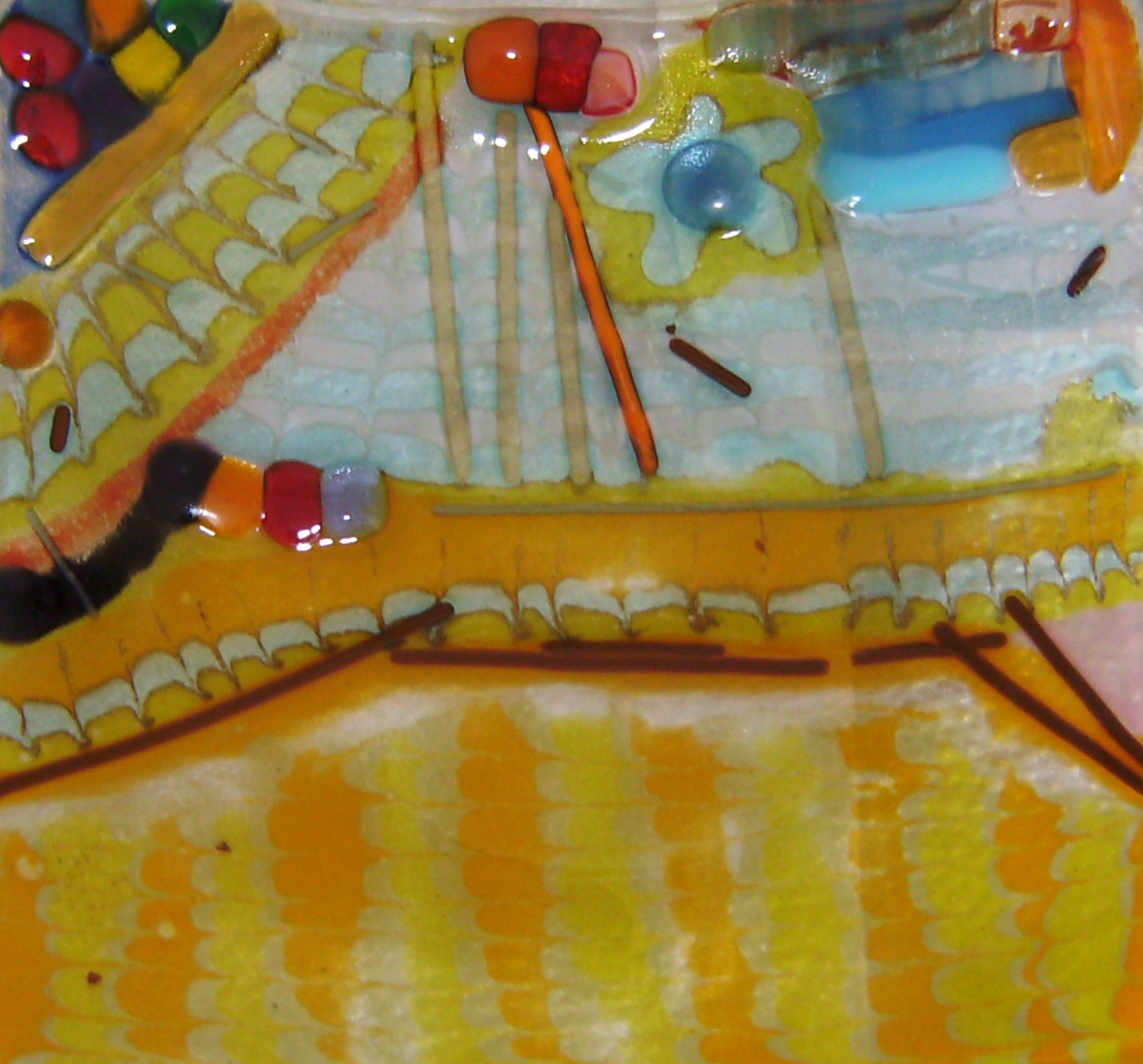 Unterschiedliches eng miteinander verbinden, das ist "Fusing", bei der Flachglasscheiben und Metalleinlagerung in mehreren Arbeits- und Brennschritten miteinander zum künstlerischen Produkt verbunden werden. Trotz aller Erfahrung lässt sich das Ergebnis nicht immer vorhersehen. Am Anfang steht nach der Idee eine Zeichnung. Dann folgt die Arbeit mit dem Glasschneider, um die einzelnen Segmente herzustellen, die dann zusammengesetzt und verbunden werden.